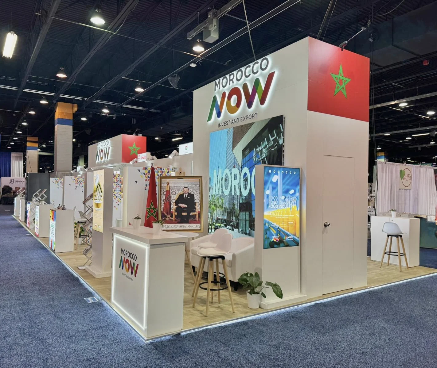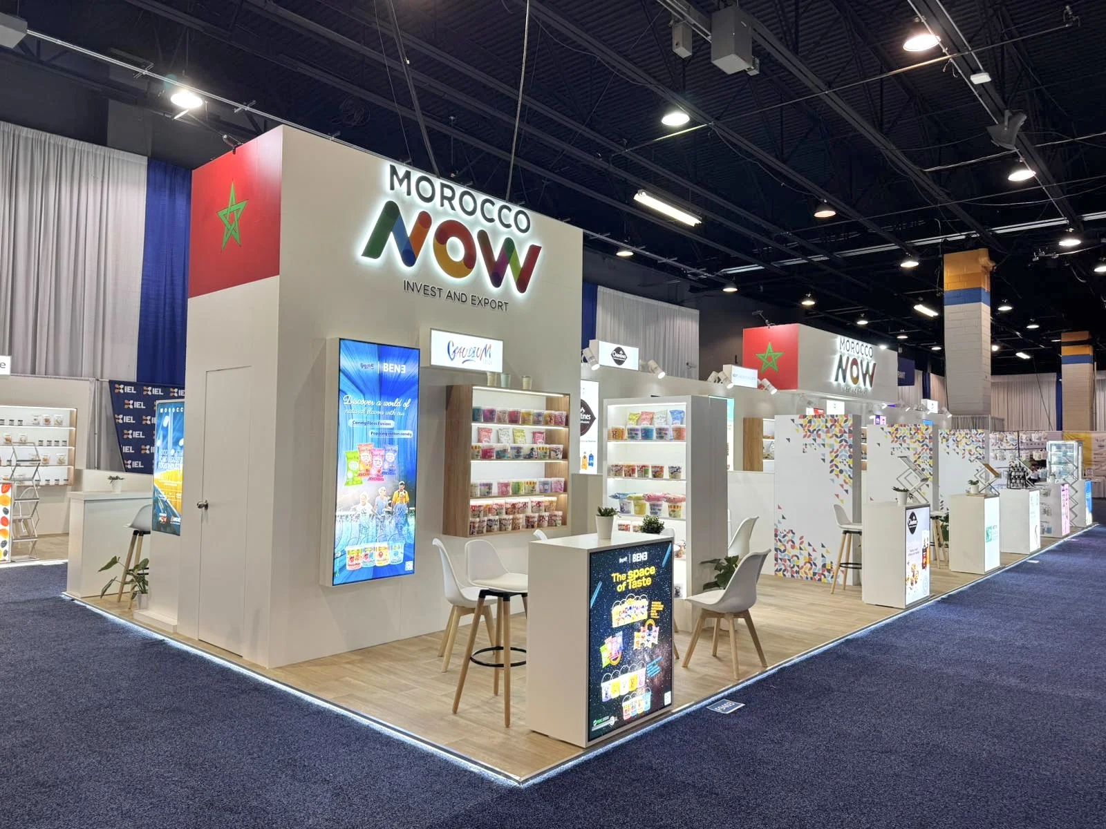 For Morocco, the objective was to consolidate multiple producers under a strong national identity while enabling high-volume B2B meetings within a structured pavilion format.