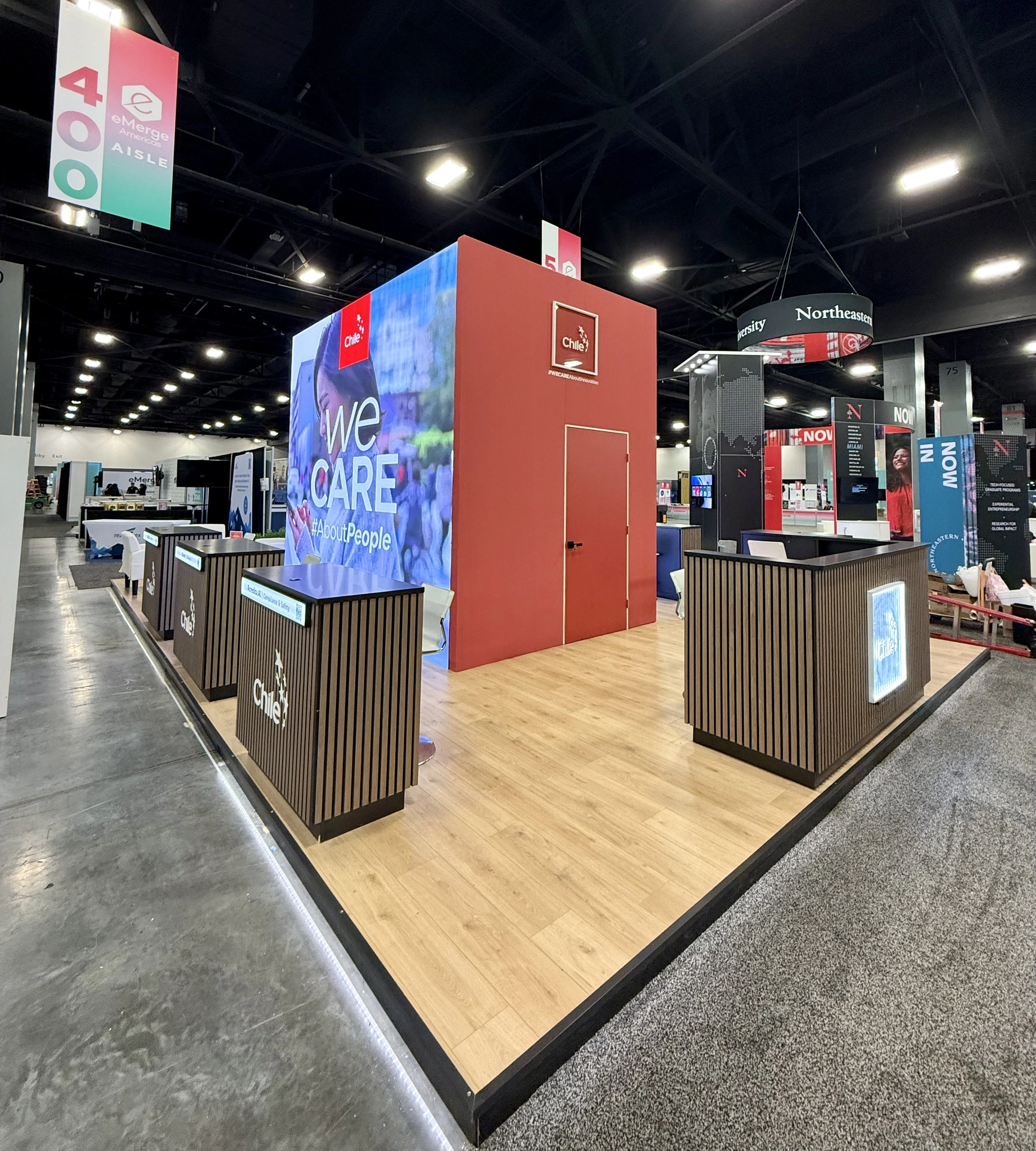 For ProChile, the objective was to present Chile’s innovation ecosystem under a unified country brand while providing functional space for multiple participating companies.